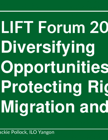 Presentation slides from the LIFT Forum 2019. Diversifying opportunities,m protecting rights in migration and work - Ms Jackie Pollock Full Report (English): Read Download
