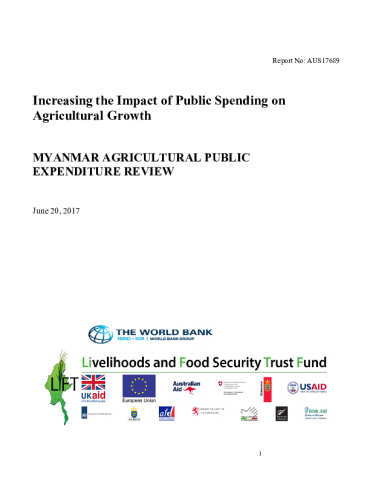 This first-ever Agricultural Public Expenditure Review is an important step to deepen the policy dialogue on improving the impact of public services on agricultural growth and other developmental objectives. It covers the period from 2009/10 to 2016/17, analyzing the budgets of the Union Ministry of Agriculture, Livestock and Irrigation (MOALI),1 selected Regions and States, the Myanmar Agricultural Development Bank’s (MADB) financing, and donors.