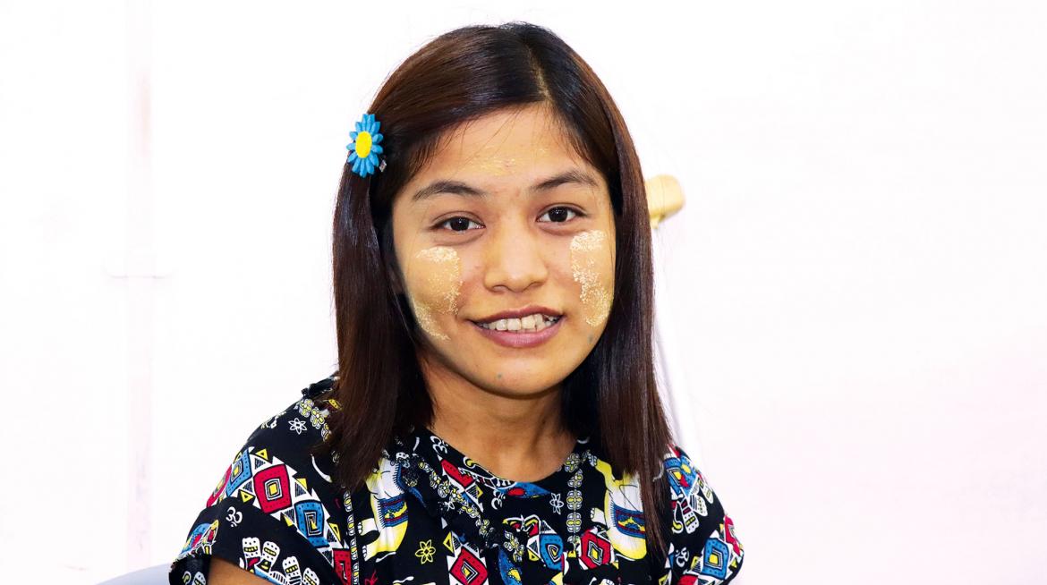 Despite the challenges she faces, Hkabawng Nan Seng is very proud of her job as a sewing machine operator in Hlaing Thar Yar. She earns the same amount as the other workers, with a daily wage of MMK 4,800 (USD 3.30) and MMK 1,200 in overtime pay. “Compared to those who did not receive training, I can perform better thanks to Aung Myin Hmu Training Centre.”