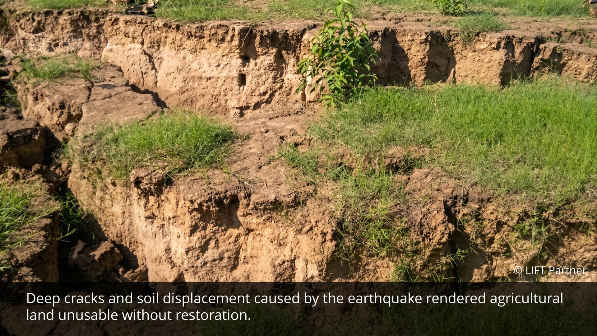 For one farmer, the earthquake left his land severely damaged, with a large depression making cultivation impossible.