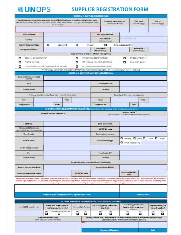 This form is to be used for registering new partners in the oneUNOPS system (in order to provide contact information and banking details).