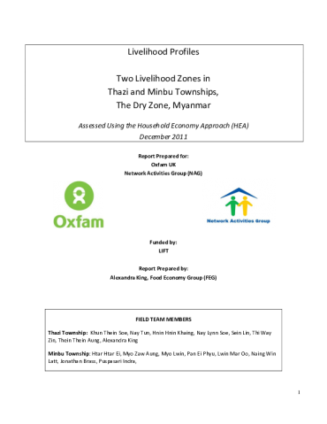 Two Livelihood Zones in Thazi and Minbu townships, the Dry Zone, Myanmar