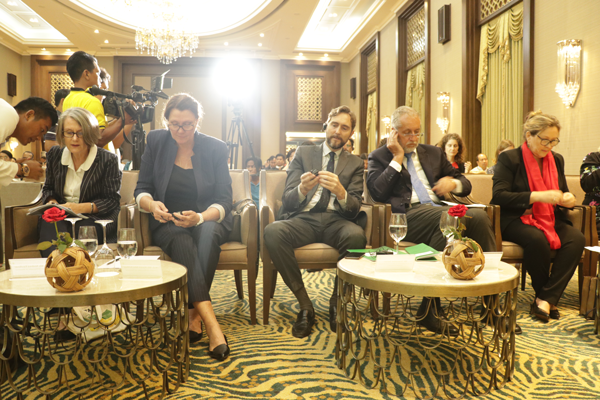 The event started in the afternoon with a marketplace showcasing some of our partners’ work in a myriad of domains such as nutrition, agriculture, gender equality, migration and social and financial inclusion. Featured projects ranged from the Food and Agriculture Organization of the United Nations strengthening the adaptive capacity and resilience of fisheries to Mercy Corps restoring and invigorating the rice sector in Laputta.