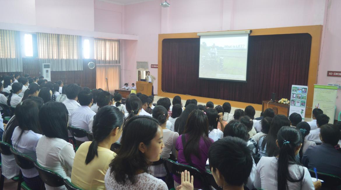 LIFT held a presentation about its works in Myanmar to YAU’s final year undergraduate students and faculty members on 7 August. “The first years of study are lectures only, but in the final year there are both lectures and field practice, so we have a very tight schedule. By having this kind of seminar from LIFT, we can learn briefly about what their rural development programmes are and how our study can fit with those when we work for the country after our graduation,” said final year student Myo Thinzar Lin, sharing her learning experience after the presentation, whose goal is to become an educator.