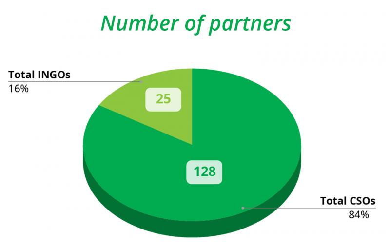 LIFT၏ ကိုဗစ်နိုင်တင်း စီမံကိန်းတွင် ဆောင်ရွက်နေသည့် အဖွဲ့ပေါင်း ၁၅၃ဖွဲ့အနက် ၁၂၈ဖွဲ့မှာ ပြည်တွင်း မိတ်ဖက်အဖွဲ့အစည်းများဖြစ်ပြီး ယင်းတို့ထဲမှ အဖွဲ့အနည်းစုဖြစ်သည့် အဖွဲ့ ၁ဝဖွဲ့နှင့်သာ ရန်ပုံငွေ ပံ့ပိုးမှု စာချုုပ် တိုက်ရိုက်ချုပ်ခဲ့ပြီး ကျန်ရှိသည့် ၁၁၈ဖွဲ့မှာ အခြားအဖွဲ့များ (ပြည်တွင်း သို့ နိုင်ငံတကာ)ဖြင့် တဆင့်ခံ ချုပ်ဆိုခဲ့ပါသည်။ နိုင်ငံတကာအဖွဲ့ပေါင်း ၂၅ဖွဲ့နှင့် ရန်ပုံငွေ ပံ့ပိုးမှုအတွက် တိုက်ရိုက်စာချုပ်ချုပ်ခဲ့သည်။