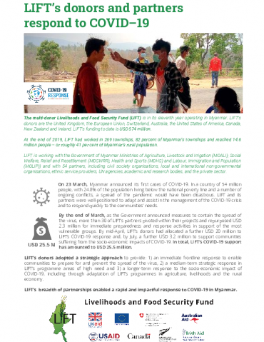 Read the full story of how LIFT and partners have mobilised COVID-19 assistance in Myanmar, and how it was made possible with the LIFT donors' support.