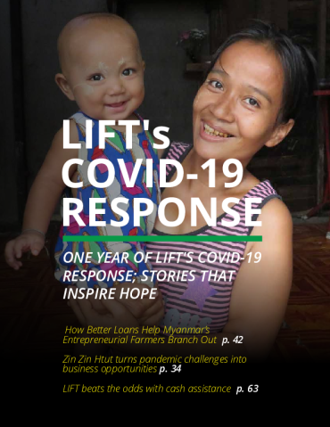 LIFT's COVID-19 response newsletter which reviews and reflects on 12 months of LIFT's response through the experiences of it's beneficiaries and partners. In response to the outbreak of COVID-19, LIFT's partners quickly adapted and responded to the pandemic and supported the early recovery of vulnerable populations. Despite tremendous challenges, remarkable stories of resilience, commitment, service, ingenuity, and creativity were witnessed. Read the full report to access the visualized supplement to LIFT’s Annual Report 2020, focused on the COVID-19 response, and learn about the dedication, service and innovation - personalised stories happening at a local level that together delivered at scale across the country.