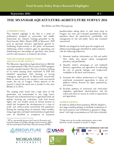 The Myanmar Aquaculture-Agriculture Survey 2016