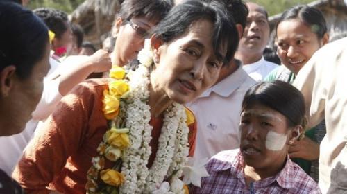 Aung San Suu Kyi visit to LIFT supported project in Pakoku