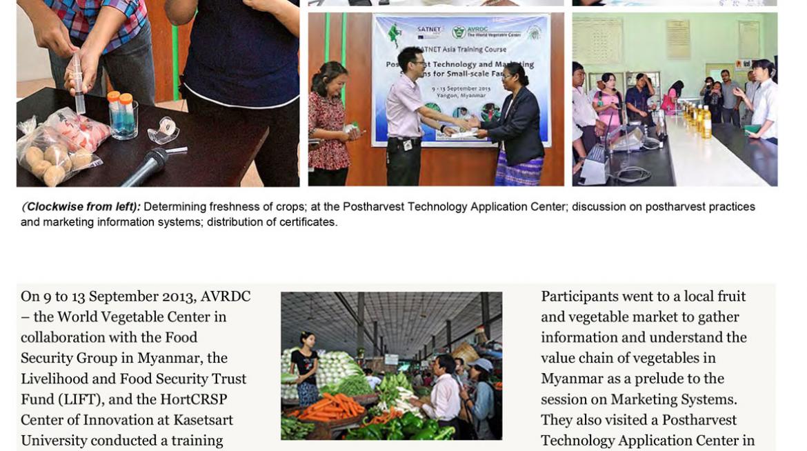 AVRDC mentions in their today newsletter about "Postharvest Technology and Marketing Systems for Small-scale Farmers" training co-organized by LIFT Fund and HortCRSP Center of Innovation at Kasetsart University on 13 September 2013 in Yangon.