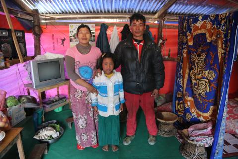 Daw Ngun Hlei Tial (on the right), her carpenter husband and their four children live in a tent on the site of where her house was washed away. She had built a small snack shop at the front of her house using Chin MFI loans over the past seven years, but that is also gone.