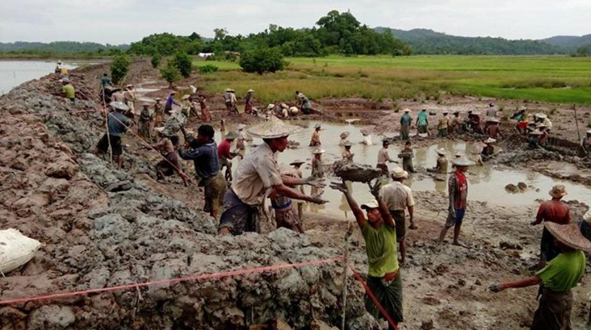 To protect paddy fields from salt water intrusion along the Myebon, Minbya, Kyaukphyu and Pauktaw coastlines in Rakhine State, the Tat Lan programme has built 93 miles of embankments, 31 sluice gates and 27 culverts.