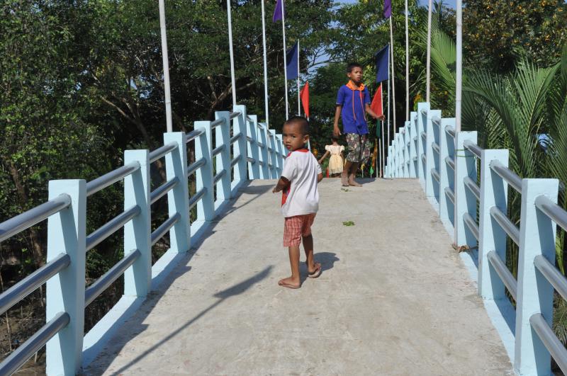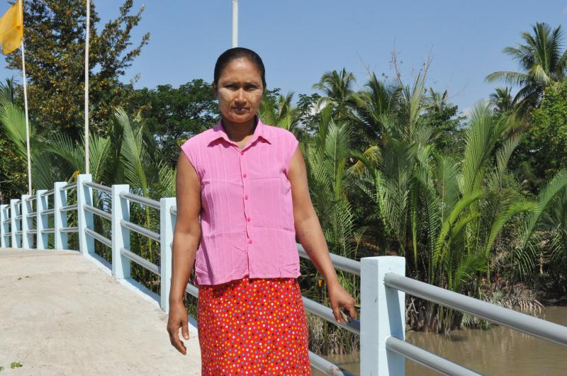 “We live at the eastern side of this stream. In the past, we had so much trouble for transport, especially for school children. School is located at the other side and not many people own the boats. So every day we had to ask for boat owners to send our school children to the other side and back and forth. Sometimes, children missed their school as there were no boats available in time,” said Daw Khin Than Oo, a mother of school children living in the village.