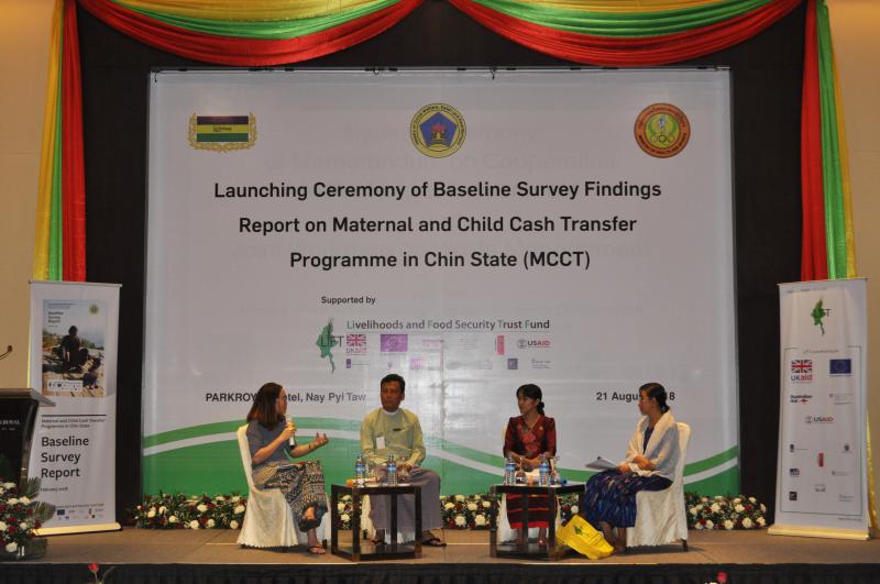Representatives of the UK Government, the Chin State Government, the Department of Social Welfare, LIFT and the National Nutrition Centre took to the stage in Nay Pyi Taw on 21 August to officially launch the baseline survey of the Chin State maternal and child cash transfer (MCCT) programme.