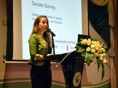 Ms. Nora Pistor, LIFT's Gender Specialist Consultant, presented the results of a gender survey completed by LIFT implementing partners to highlight the need for a new gender strategy and capacity training for partners.