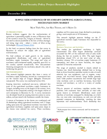 In this brief, we present findings from the first survey in Myanmar to analyze the supply side of agricultural mechanization.