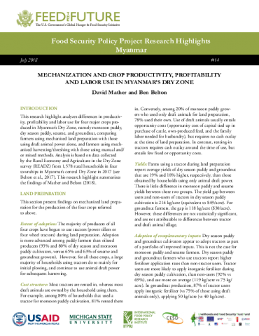 Research Highlights #14: Mechanization and crop productivity, profitability and labor use in Myanmar's Dry Zone