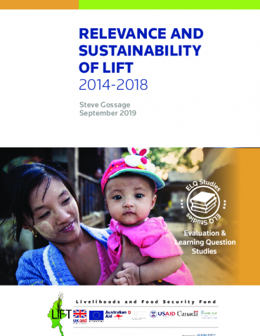 This study aims to answer two of LIFT’s Evaluation and Learning Questions covering relevance: “to what extent have the LIFT strategy and LIFT interventions been relevant to the needs of the people it intends to reach?” and sustainability: “to what extent has LIFT identified and established socially, environmentally, and economically sustainable approaches for achieving the purpose and programme outcomes?” The study made use of standardised tools to assess project relevance and sustainability and identifies the key drivers of relevance and sustainability across a sample of 50 LIFT projects implemented between 2015 and 2018 . The study finds that while LIFT projects tend to perform very well in terms of relevance, achieving sustainability appears more challenging. The study identifies three key factors across different thematic areas that influence project sustainability: the level of complicatedness of the project, the extent to which the project provided direct support compared to more collaborative “facilitation”, and the extent to which projects had thought about and integrated sustainability into their project design and (adaptive) management.
